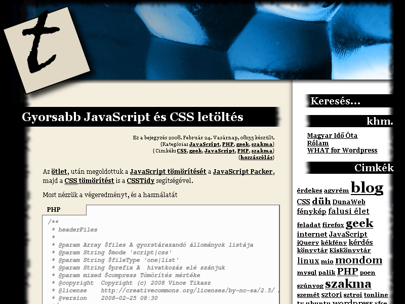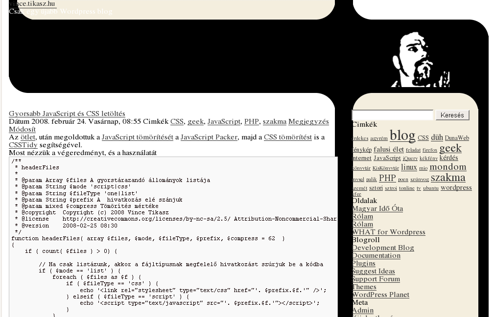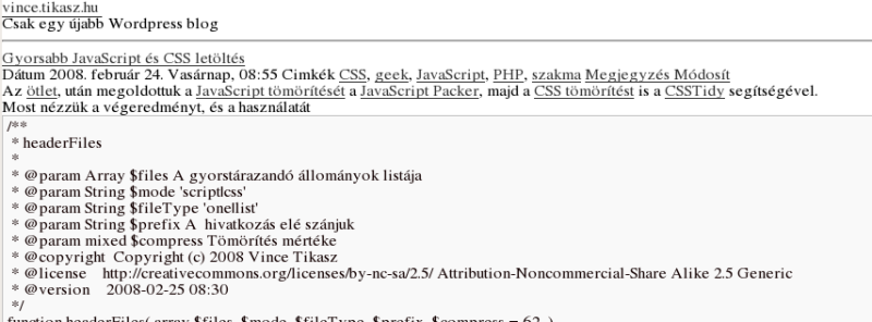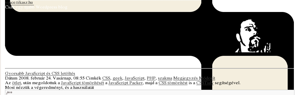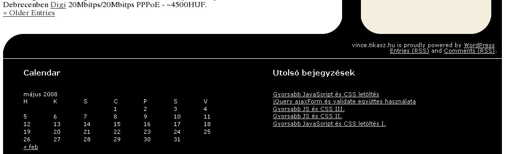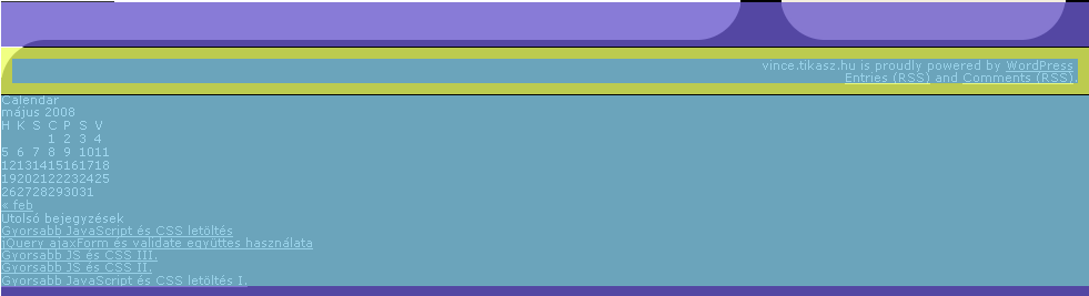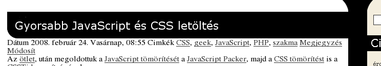 Az első két kiválasztóval a leírás mezőt betettem a felső (régi dizájnból átvett háttérszínű) dobozba. A második kettővel, pedig az oldal valódi címét (ami esetünkben az URL is egyben) a fekete blokk közepére tettem. A #titletext, és #titleimg blokkokkal kicsit a dizájnnak is adhatunk…