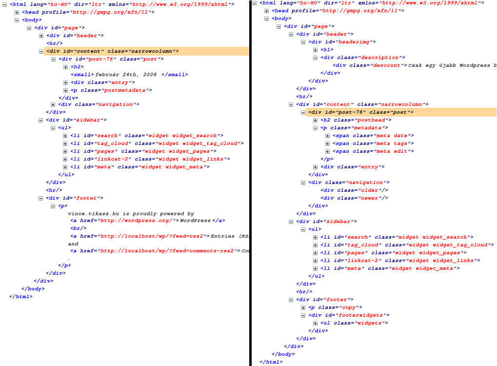 Általában, ha új WP témát készítek, akkor a alapértelmezett Kubrik témáról készítek egy kigyomlált másolatot, amiben csak a legszükségesebb állományok maradnak meg (style.css, index.php, header.php, footer.php, sidebar.php, comments.php, comments-popup.php, searchform.php, functions.php), majd kiürítem a CSS-t, hogy nulláról építhessük fel az új kinézetet. Ezután az alap szerkezetet kissé módosítottam egy általánosabbra.
